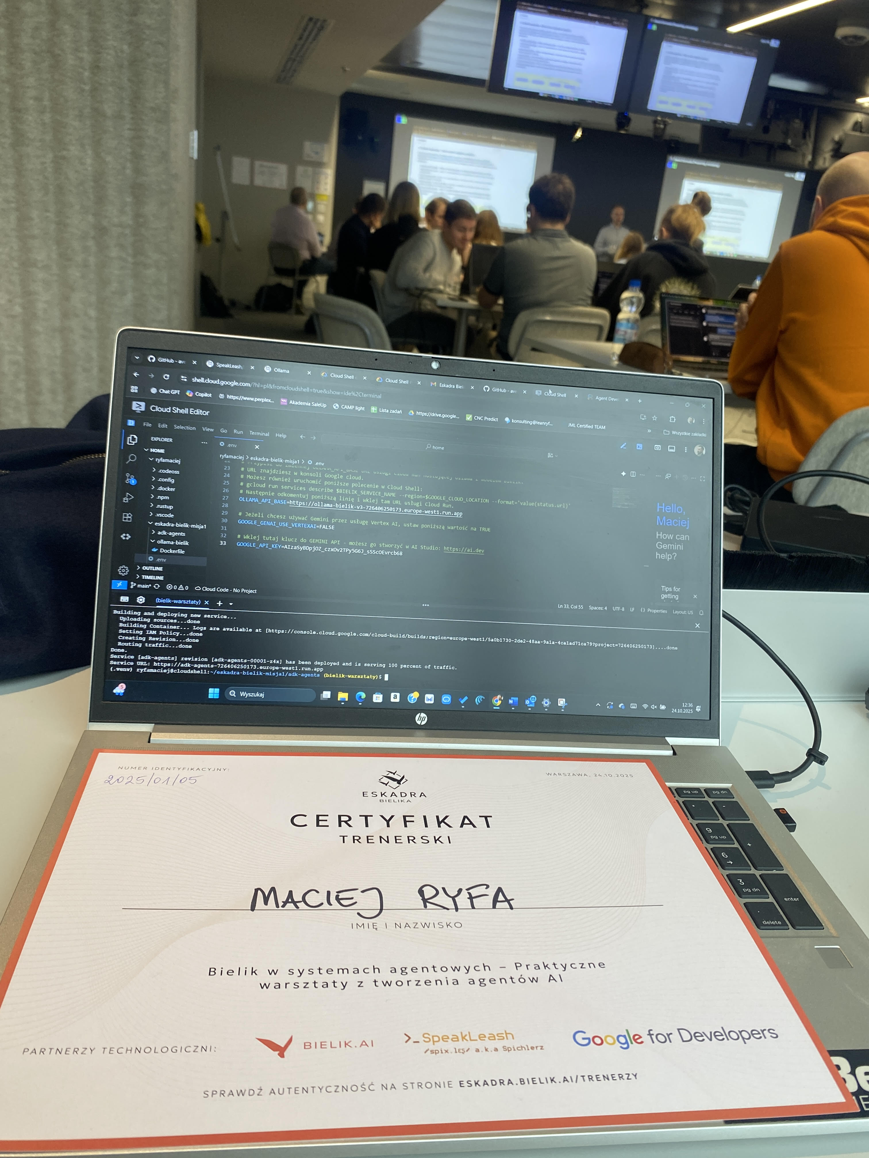 Z radością informujemy, że Maciej Ryfa, trener współpracujący z naszą firmą, został oficjalnie powołany do Eskadry Bielika – ogólnopolskiej inicjatywy rozwijającej kompetencje w zakresie tworzenia agentów AI z wykorzystaniem polskiego modelu Bielik AI, Google ADK oraz Google Cloud.